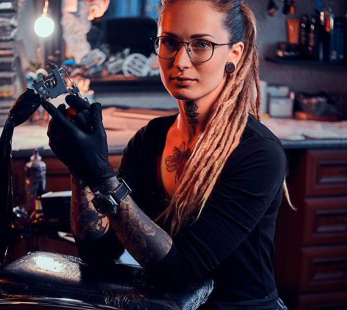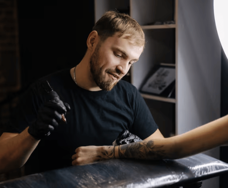 A contemporary tattoo studio where artistry, precision, and atmosphere converge.